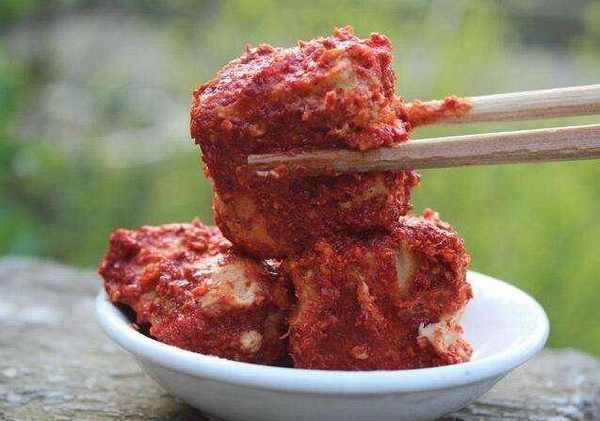 豆腐幹後,可以放入蒸鍋或燉菜鍋中,蓋上蓋子,第二天備用。最主要的是把裡面的水擦幹。豆腐發酵的時候,一開始會有一層粘液,然後會發黃,發黃後會長出白色的絲。這種白絲是一種有益菌。待白絲出來,就可以準備生產瞭。制作時對調料沒有特殊要求。薑粉用於增強香氣。它有一種特別適合它的辛辣味道。主要必備的是辣椒粉,其次是其他香料。辣椒粉可以更香,但最好少辣。
