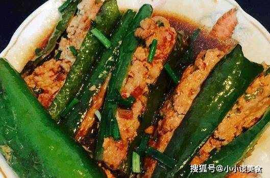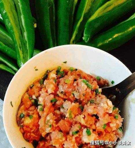 1.青椒洗凈,去蒂去籽,中間切去。豬肉、蔥末、薑末和蒜末。