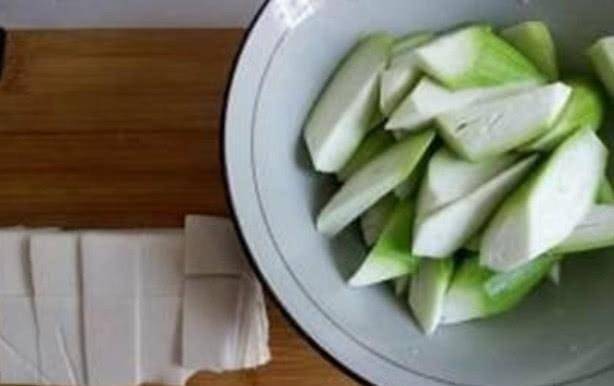 2:絲瓜去皮切成小塊備用。