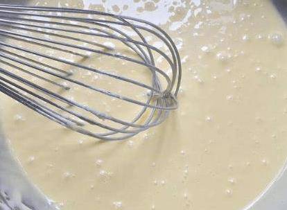 3.再次快速攪拌均勻。你也可以用機器打敗他。玩機器更快,更不累人。然後倒入適量的色拉油,慢慢加入,直到配料混合均勻。加入所有色拉油後,面團就做好瞭,然後我們在電飯鍋上抹一層薄薄的色拉油,這樣蛋糕就做好瞭,蛋糕也不會損壞。