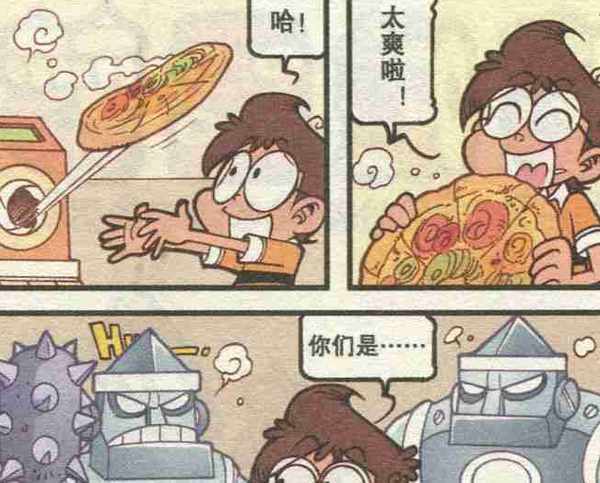 但是就在星太奇想要吃這些美食的時候卻發現身邊出現了兩個武士,是因為星太奇要吃霸王餐,所以武士這是過來教訓他呢。原來哆啦噩夢剛剛讓星太奇按的按鈕是還款的按鈕,霸王點餐機雖然能讓他們不用付錢就能吃上午餐,但是他們必須被教訓一頓。