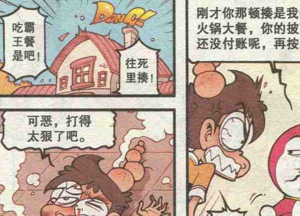 不用付錢,但是要被暴揍,這就是吃霸王點餐機的代價,星太奇被兩個武士狠狠地揍了一頓,而且他還得負擔哆啦噩夢的那一份。所以說,世界上根本沒有什麼白吃的午餐,大家看見有霸王餐的時候,一定要警惕嗎,這些都是騙人的陷阱。