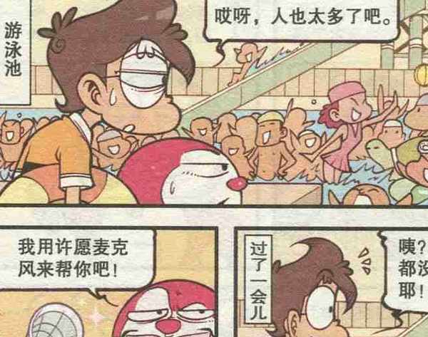 星太奇和哆啦噩夢來到泳池,許願麥克風能許願
