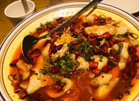 第四道是功夫魚,其實就是水煮魚,草魚片很嫩,貌似處理過,刺並不多,難道功夫二字都在挑刺上了?底下鋪著豆芽。好吃到停不下來。