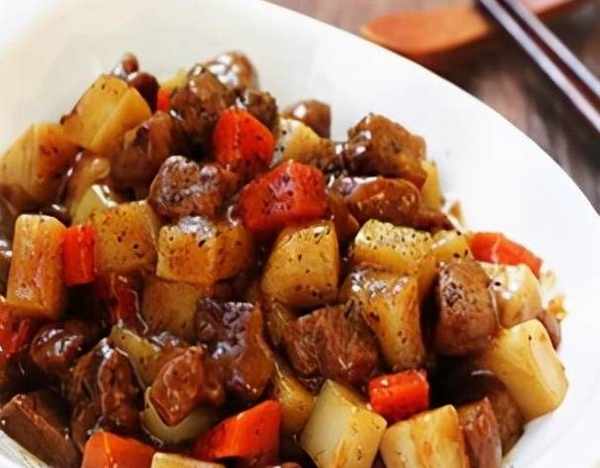 黑椒肉粒炒年糕的成品圖黑椒肉粒炒年糕的烹飪技巧技巧
