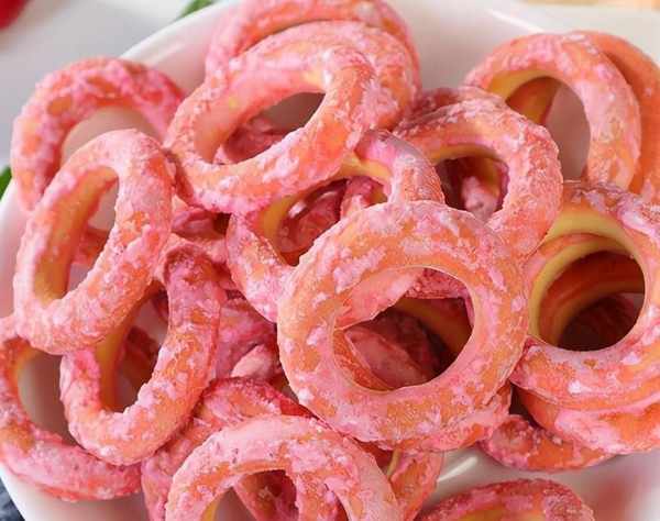 這款美食看似比較像我們常吃的甜甜圈,但是口感卻大有不同,是以全麥為主要配料,原味的口感,不添加任何糖分,對於正在減肥或者正需要控制體重中的人,是不錯的選擇,既可以作為零嘴,還可以果腹充饑,入口完全沒有油膩的感覺,當然為瞭迎合人們對口感的需求,還有各種水果、霜糖口味,可供選擇。