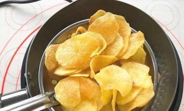在炸薯片的時候千萬不要一次性炸太多瞭,否則薯片放時間太久可就不脆瞭,味道和口感都會大打折扣的。