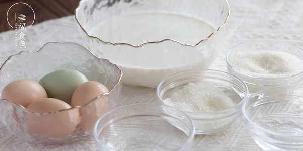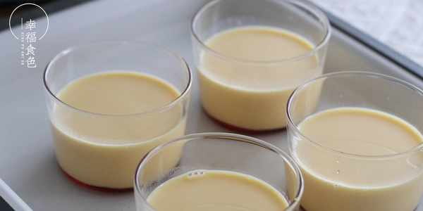 [準備材料]:牛奶400克,白砂糖35克,白砂糖100克,冷水30克,熱水25克,雞蛋4個。