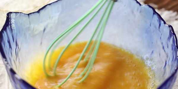 1、碗中打入3個雞蛋,最後一個雞蛋隻取蛋黃部分,用手動打蛋器打散,打成蛋液就可以瞭。