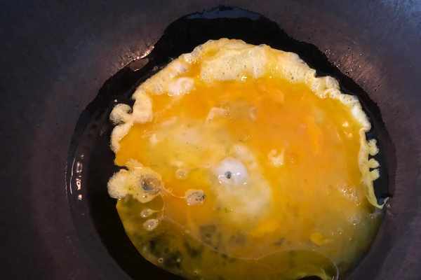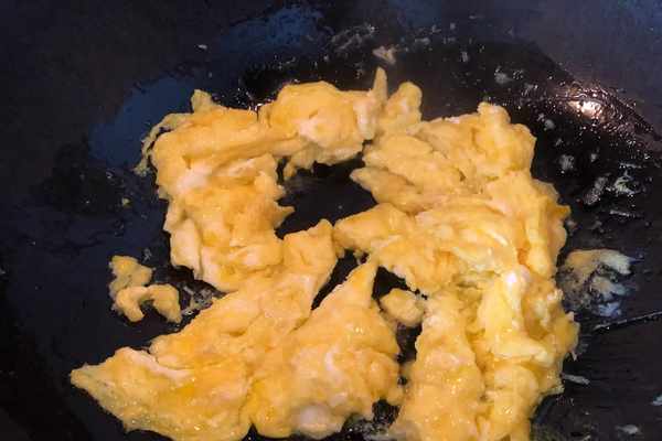 倒入剛才炒好的雞蛋,加入少量食鹽和十三香。