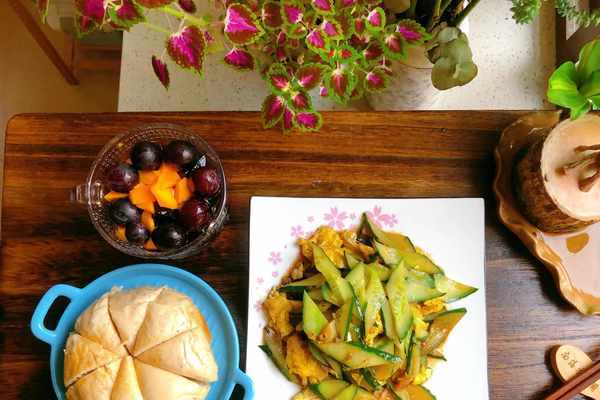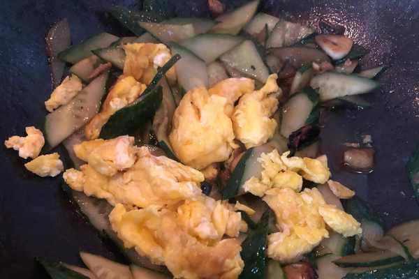 這盤黃瓜片炒雞蛋就出鍋嘍