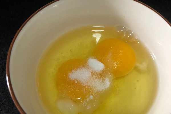 碗中打入兩個雞蛋,放一丟丟食鹽。