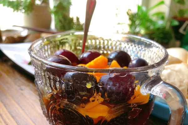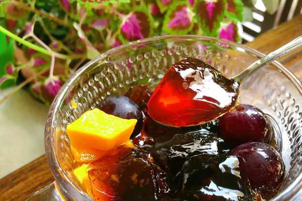 這個冰粉粉,加入瞭葡萄和芒果,更是別有一番滋味。