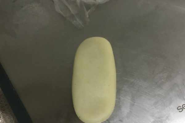19、將其包好捏緊,稍微搓成一個長條形,收口朝下,按壓扁即可,如圖所示。