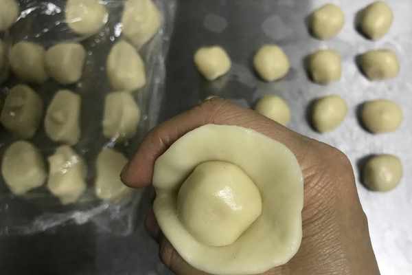 3、面粉的吸水性不同,所以制作中,水的用量要靈活操作,整理好的水油皮面團要同油酥面團的軟硬度基本一致。