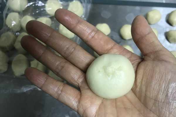 12、這樣包好捏緊,一個小面團就制作好瞭,如圖所示。