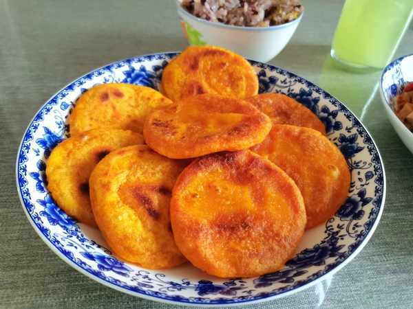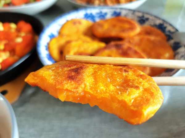 4、松軟香甜的南瓜餅,看著很誘人,顏色金黃,外酥裡軟糯,吃著好香甜。