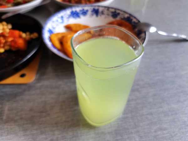 11、再打一個芹菜汁,半根芹菜切段放入料理機,倒入800毫升溫開水,30秒鐘打成芹菜汁,淡淡的口感,傢人都喜歡這樣打的蔬菜汁。
