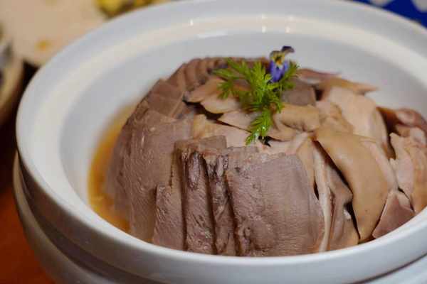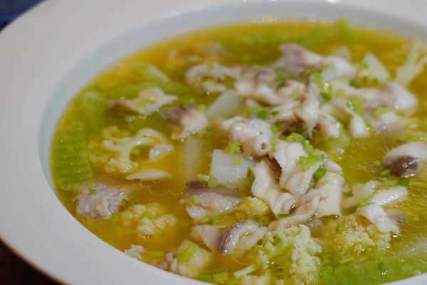 酸湯汆狗鯊,配菜是萵筍和花菜