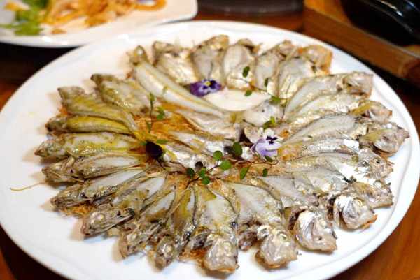嗆葉子魚。我喜歡這種做法,感覺比醬油水煮的好吃