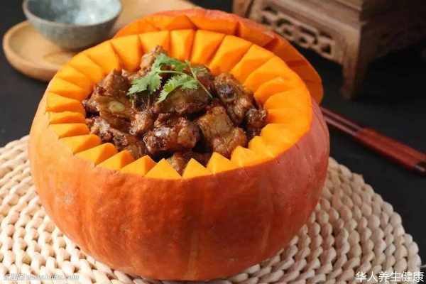 南瓜600克、豬五花肉500克、紹酒15克、醬油20克、宴友食用油、甜面醬甜面醬、炒米粉70克、雞粉2克、白糖10克、蔥10克、薑5克