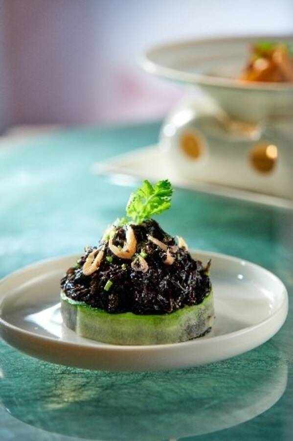 蝦苗拌頭水紫菜具有特別的莆田韻味,采用瞭發芽30日的極品紫菜,並嚴選最鮮嫩且極為珍貴的15厘米部分,佐以南中國海特產的口感細膩的蝦苗,擁有著天然的鮮味和豐富的營養。最神奇的是,它並非是咸味,而是味道微甜微酸,彈滑爽口,是一道最意想不到的開胃美膳。