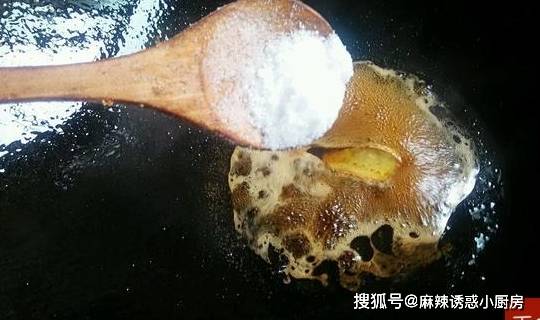5.鍋內放一小勺醬油,兩勺醋一滿勺糖,適量食鹽,制澆汁。