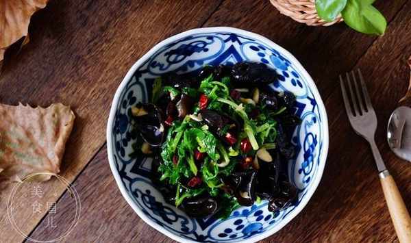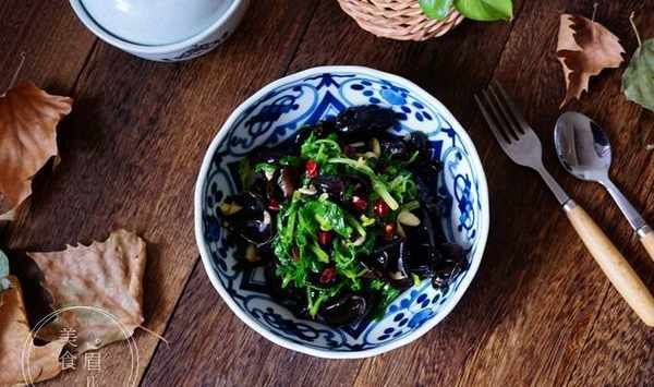 芹菜葉子其實是個寶,常吃好處多多,不要再扔掉瞭,經過焯水可以減輕它的苦澀味道,和木耳拌一拌,簡單又清爽,冬天要時常吃上一些,對身體健康有好處。