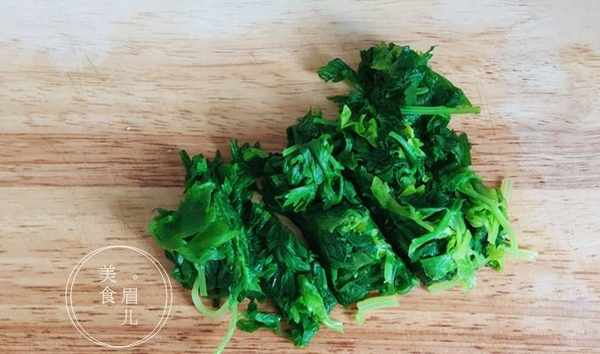 第四步,攥幹芹菜葉的水分,切上幾刀。
