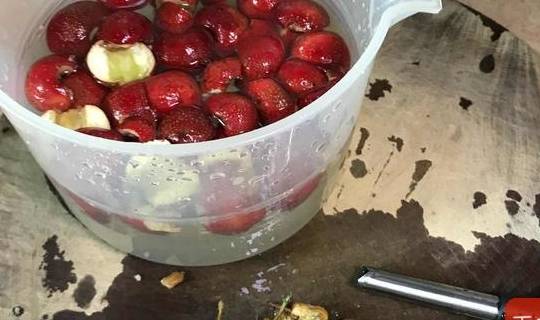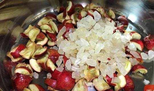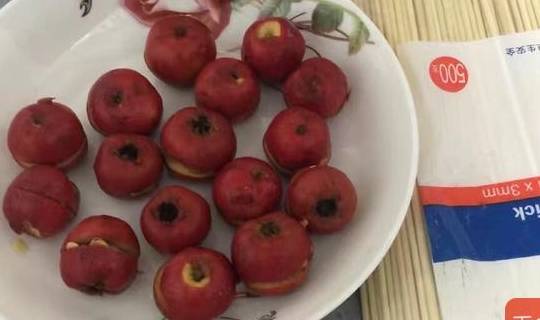 3.清水中加適量鹽將山楂泡幾分鐘後清洗幹凈,並去籽。