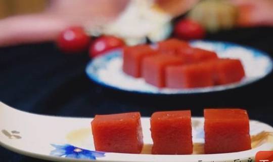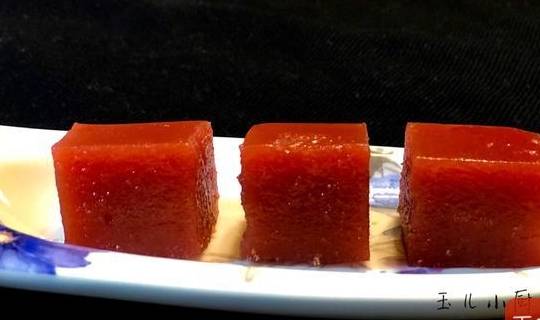 13.用刮刀在容器四周輕輕轉動一圈,將盒子倒扣一拍、成型的山楂糕即脫出。