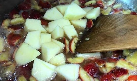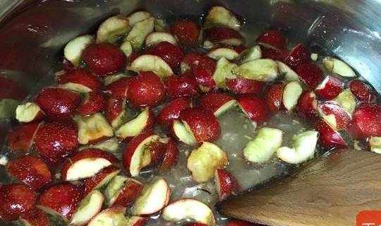 9.繼續煮10分鐘左右(山楂和蘋果都變軟瞭即可)。