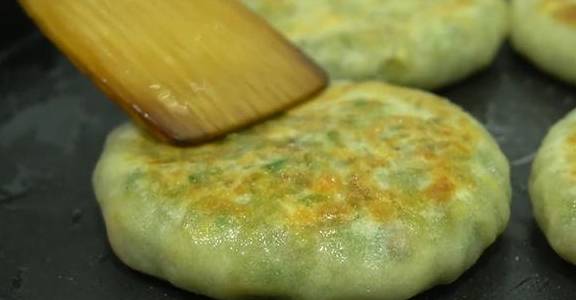 16、然後翻面再烙2分鐘,之後每一分鐘翻面一次,重復兩次。這種素餡的餡餅很容易烙熟,烙至兩面金黃色,餅子鼓起來就說明烙好瞭,大約需要6分鐘左右。