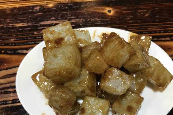 燜子:這個就是用地瓜淀粉制成的涼粉,是大連各個美食街上常見的小吃,小吃攤一口大煎鍋把燜子塊煎的脆脆的,再淋上麻醬、醬油、蝦油等調料,大冬天來碗燜子,那滋味也是美美噠!