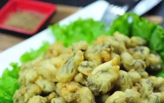 炸蠣黃:這個炸蠣黃就是晚餐中最美味的一道菜,一上桌就被吃得差不多瞭。新鮮的海蠣子裹面下鍋炸到金黃,外酥內軟鮮中帶香。