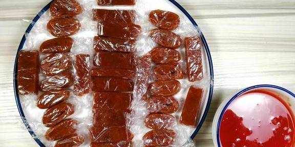 11、可以將山楂卷和山楂糕用保鮮膜裹好,方便與小夥伴們一起分享喲!