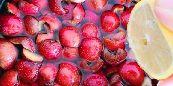 2、擠入適量檸檬汁,大火燒開轉中火熬煮至山楂完全變軟。