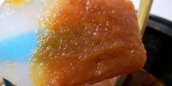 9、容器裡的山楂脫模,然後切成塊,就是山楂糕。