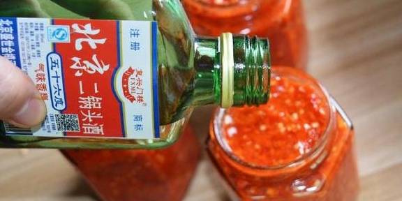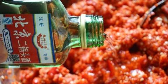 (4)醃制剁辣椒時,需要加入適量的高度白酒,加白酒除瞭可以帶入濃鬱麥香以外,還可以起到強力的殺菌作用,保證醃制剁辣椒的醃制環境。