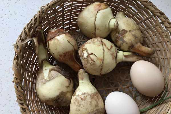 材料:茨菇300克、雞蛋2個、鹽6克、蔥2根、料酒半湯匙