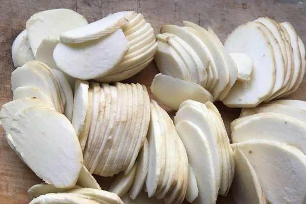 2.茨菇去皮切成大薄片並沖洗幹凈。