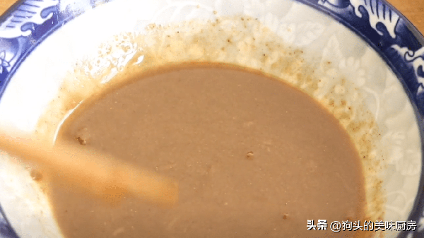 5.調個芝麻醬,一勺芝麻醬,再調入鹽跟十三香,最後倒入熟油,攪拌均勻即可。熟油就是加熱過的油。