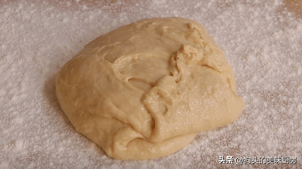 7.案板上撒多一點的面粉,把面團移過來,表面也撒多一點的面粉防粘。