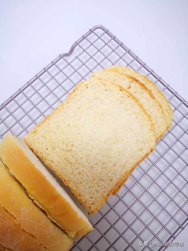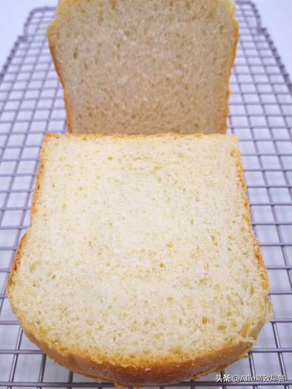 6.我這個配方做的吐司熱量較低、更低脂,更加追求口感且不在乎熱量的,油量可以加至面粉總重的十分之一或者十五分之一,再加10-20克糖和2克鹽,成品會更加濕軟。