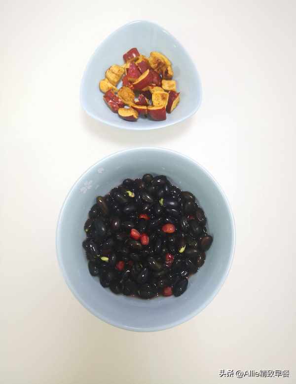 黑豆、紅豆的比例約為3:1或者4:1,洗凈後用涼水泡一夜,紅棗洗凈後去核切小塊,把所有食材都倒入豆漿機裡,加適量水,選擇五谷豆漿功能鍵即可。