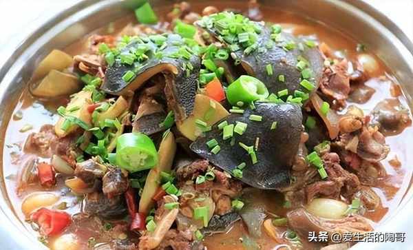 4鍋裡放油,爆香蔥薑蒜,豆掰醬,放進甲魚塊,大火翻炒,加入料酒