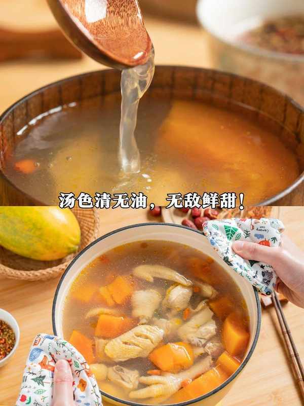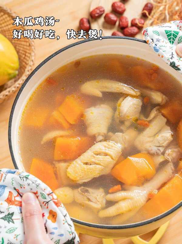 這樣等湯煲開之後,會有淡淡的椰香味,而木瓜軟爛甜蜜,雞肉鮮美。