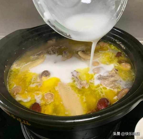 8,將椰漿倒入砂鍋中,重新沸騰就關火