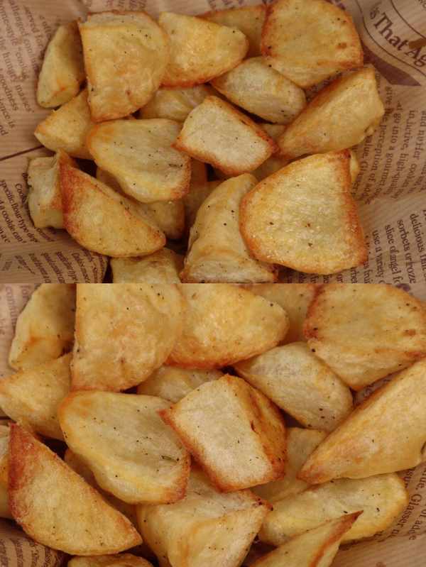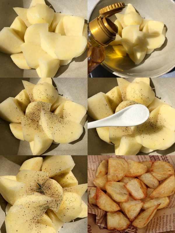 切馬鈴薯時要註意大小要一致,這樣可以讓烤制時間更加均勻,使烤出來的薯角口感更佳。