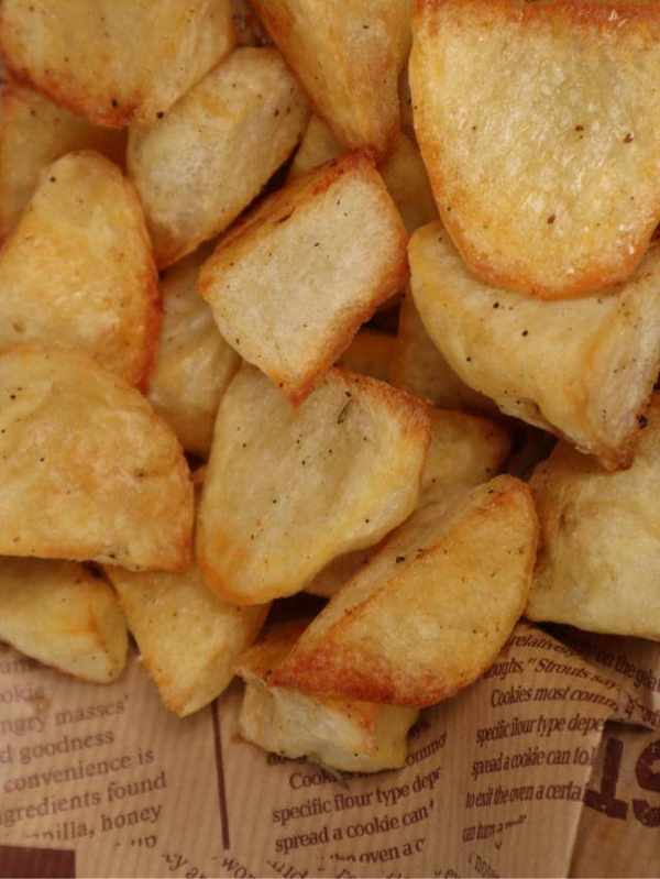 烤制前一定要將馬鈴薯條浸泡在清水中,以去除馬鈴薯中的淀粉質和雜質,這樣可以讓烤出來的薯角更加酥脆。